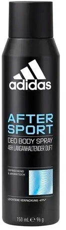 Desodorante en spray Adidas After Sport que proporciona frescura inmediata y protección contra el mal olor después de la actividad física. Su fragancia refrescante y energética ayuda a mantener una sensación de limpieza y confort durante todo el día. Ideal para un estilo de vida activo, con formato spray práctico y fácil de aplicar.