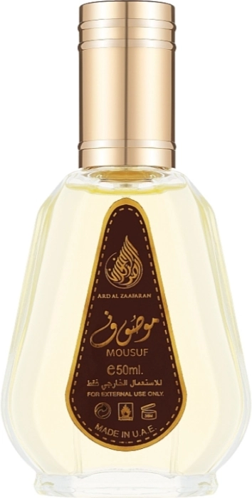 Ard Al Zaafaran Mousuf es una fragancia unisex que pertenece a la familia amaderada. La fragancia se abre con notas de uva y chocolate, seguida de un corazón de almizcle y oud. Concluye con una base de toffee, tabaco y notas florales.