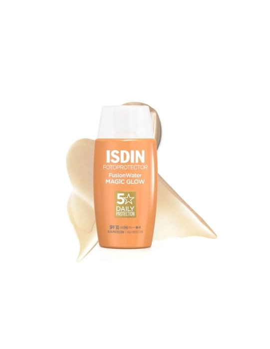 Isdin Fusion Water Magic Glow SPF30 es un protector solar facial de alta protección diseñado para proporcionar un acabado radiante y luminoso a la piel. Con su innovadora fórmula de agua fusionada, este producto se absorbe rápidamente y deja una sensación de frescura sin dejar residuos grasos. Su factor de protección solar 30 ayuda a proteger la piel de los dañinos rayos UVA y UVB, convirtiéndolo en un aliado esencial para el cuidado diario de la piel.