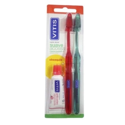 Vitis Cepillo Suave Access es la solución perfecta para un cepillado eficaz y seguro. Su diseño ergonómico y sus características lo convierten en una herramienta imprescindible para el cuidado dental diario. Este cepillo cuenta con un tamaño pequeño y una forma de cabeza ovalada, lo que facilita su uso en bocas más pequeñas y permite acceder a zonas de difícil alcance. Además, sus filamentos redondeados en los extremos garantizan una limpieza suave y delicada, evitando dañar las encías.